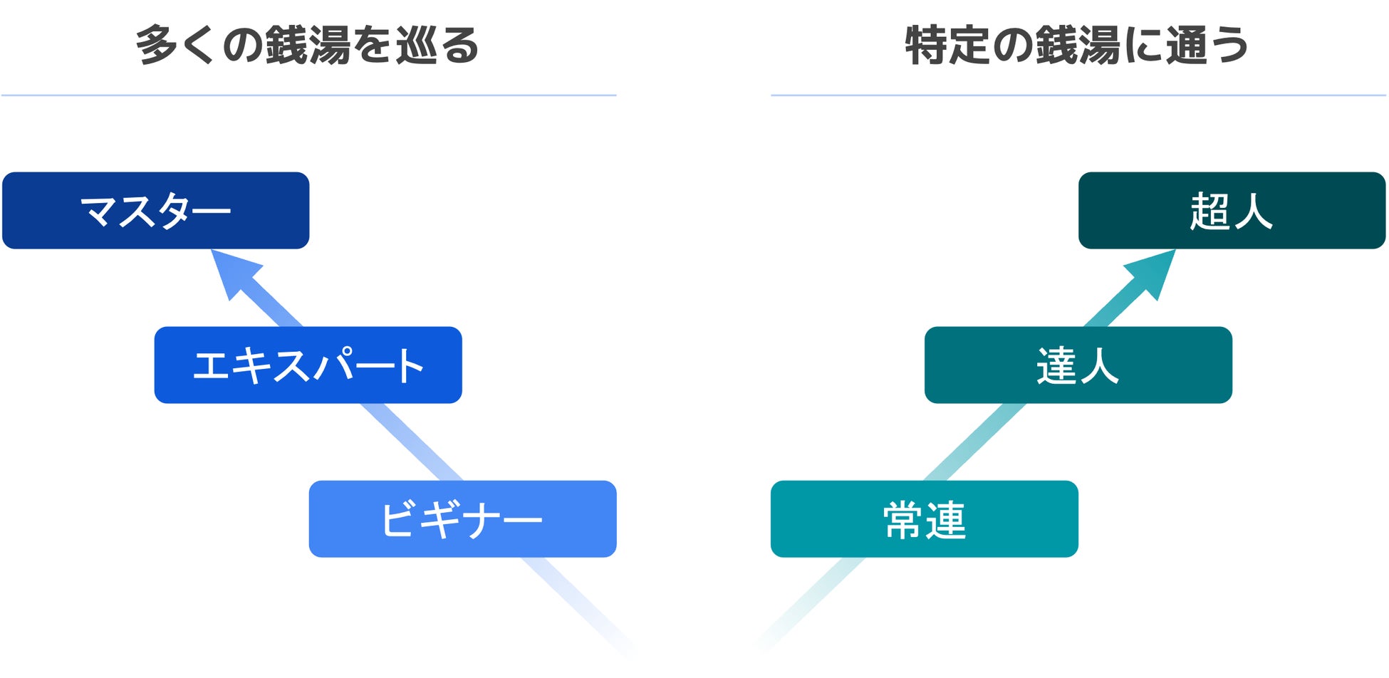 多くの銭湯を巡る場合、参加者は、3ヶ所訪れると「ビギナー」、8ヶ所訪れると「エキスパート」、18ヶ所訪れると「マスター」の「称号NFT」を獲得できます。一方、特定の銭湯に通う場合、10回目・20回目には「常連」、30回目には「達人」、そして50回目には「超人」の「称号NFT」を獲得できます。